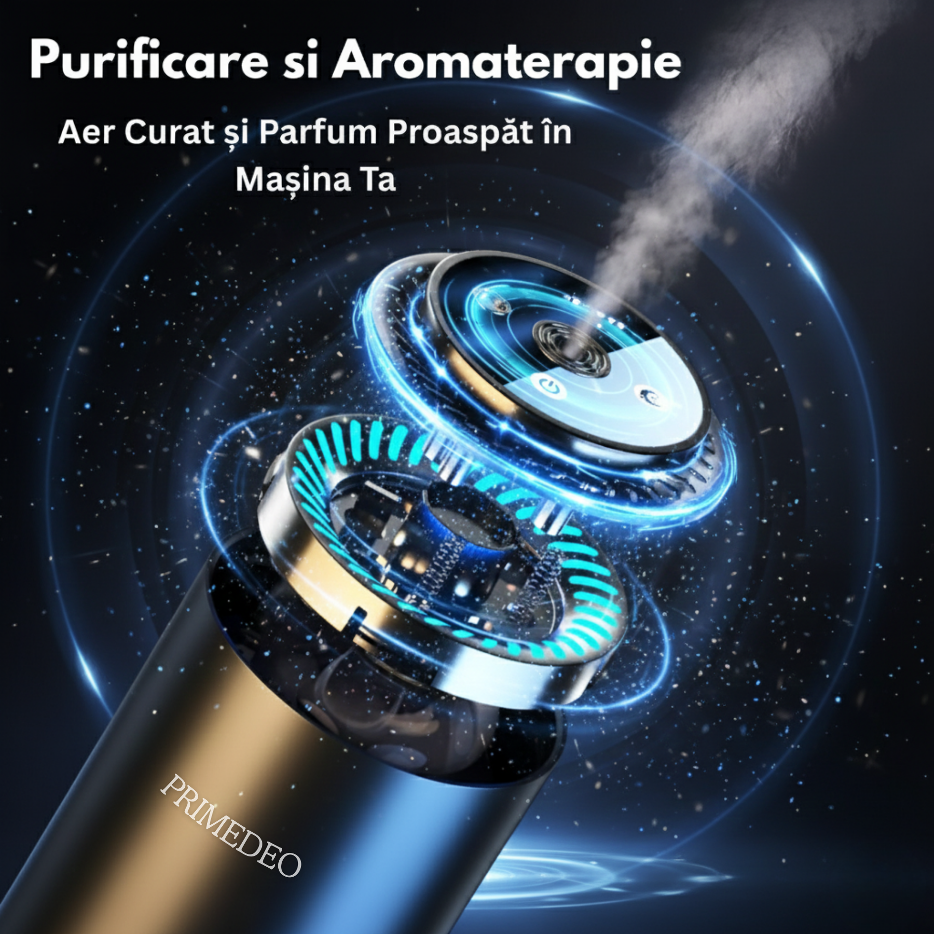 Odorizant Auto Premium PRIMEDEO®, Difuzor Aromaterapie Auto Inteligent, 2X Rezerve